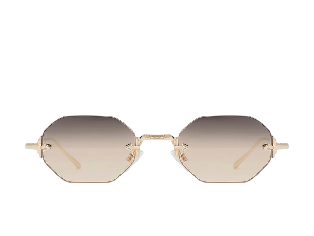 Безободковые многоугольники Carolina Lemke “Kenya” с градиентной линзой цвета nude отражают в себе вневременной стиль и внимание к деталям: переносица украшена фактурной гравировкой, а толстые линзы дополнены креплением в виде наконечников.
