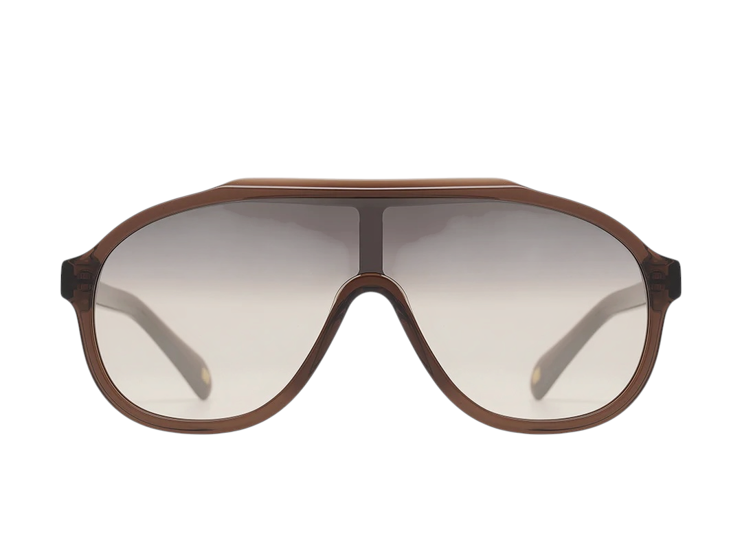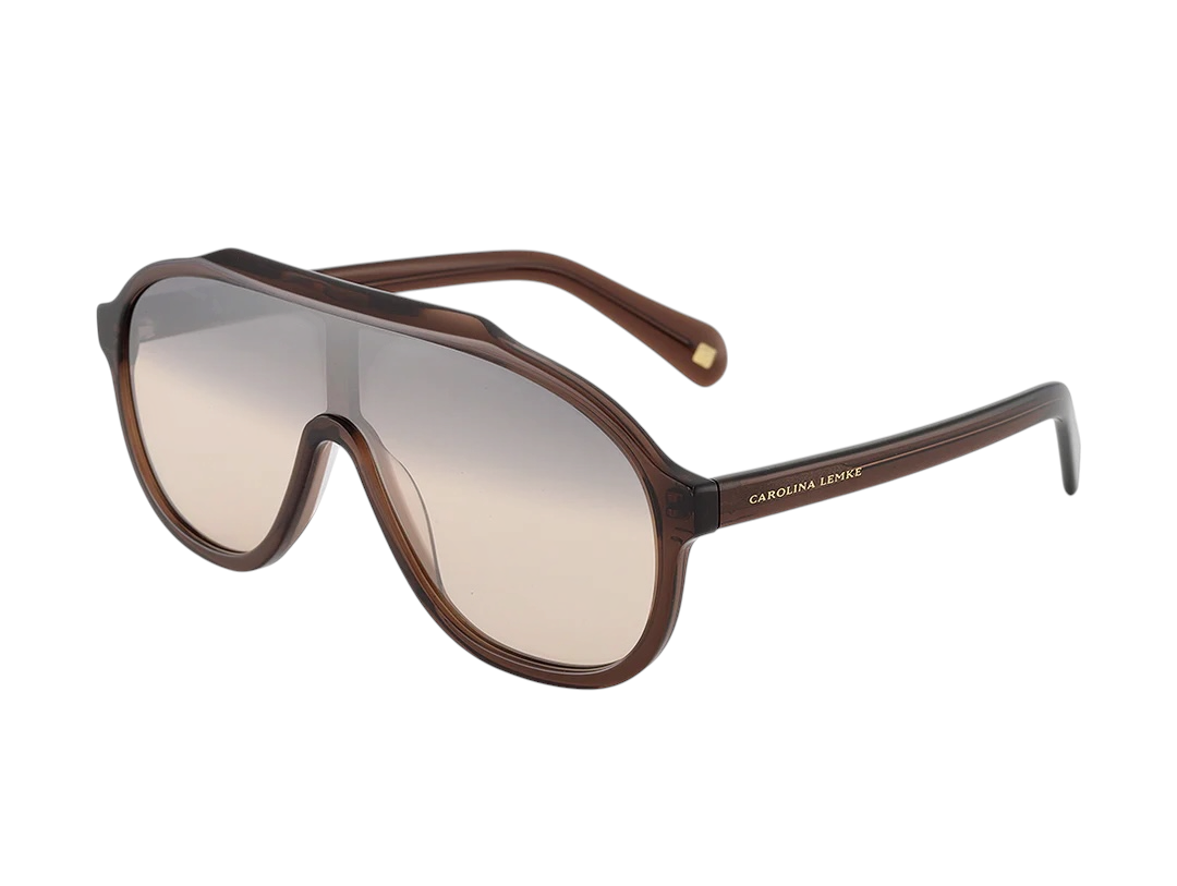 Солнцезащитные очки-маска Carolina Lemke “Gannet” с коричневой градиентной монолинзой – хит среди масок данного бренда. Смотрятся эффектно и добавляют wow-эффект даже самому простому образу.