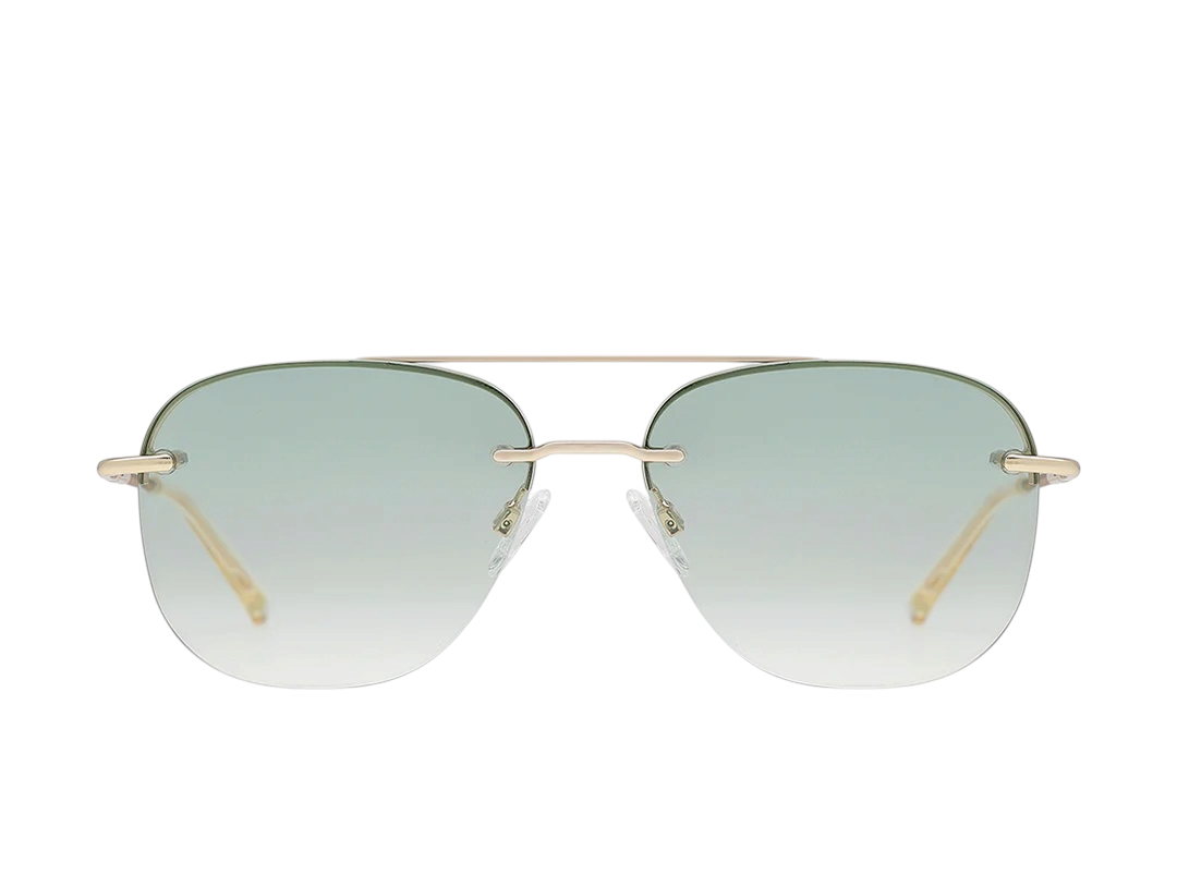 Невесомые полуоправные авиаторы Carolina Lemke “Rigel” с полупрозрачной градиентной линзой мятного цвета дополнены золотистыми дужками и ацетатом. Такие очки не хочется снимать, настолько они комфортные и легкие.