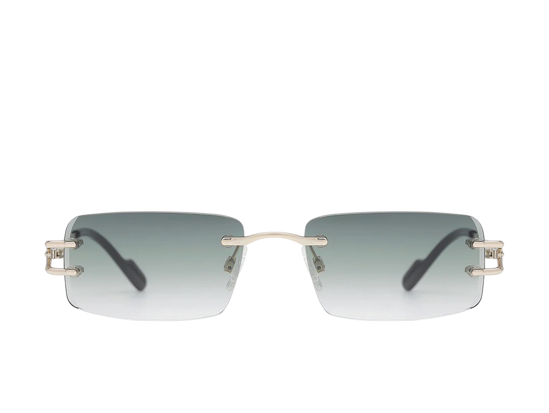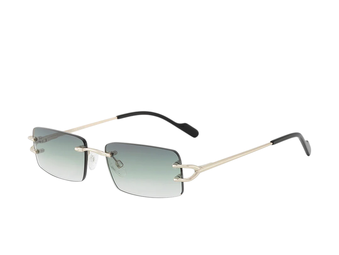 Безободковые зауженные прямоугольники Carolina Lemke “Buster” с градиентной линзой серо-зеленого оттенка.
