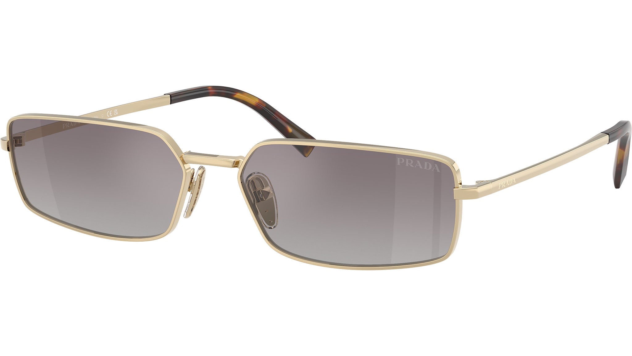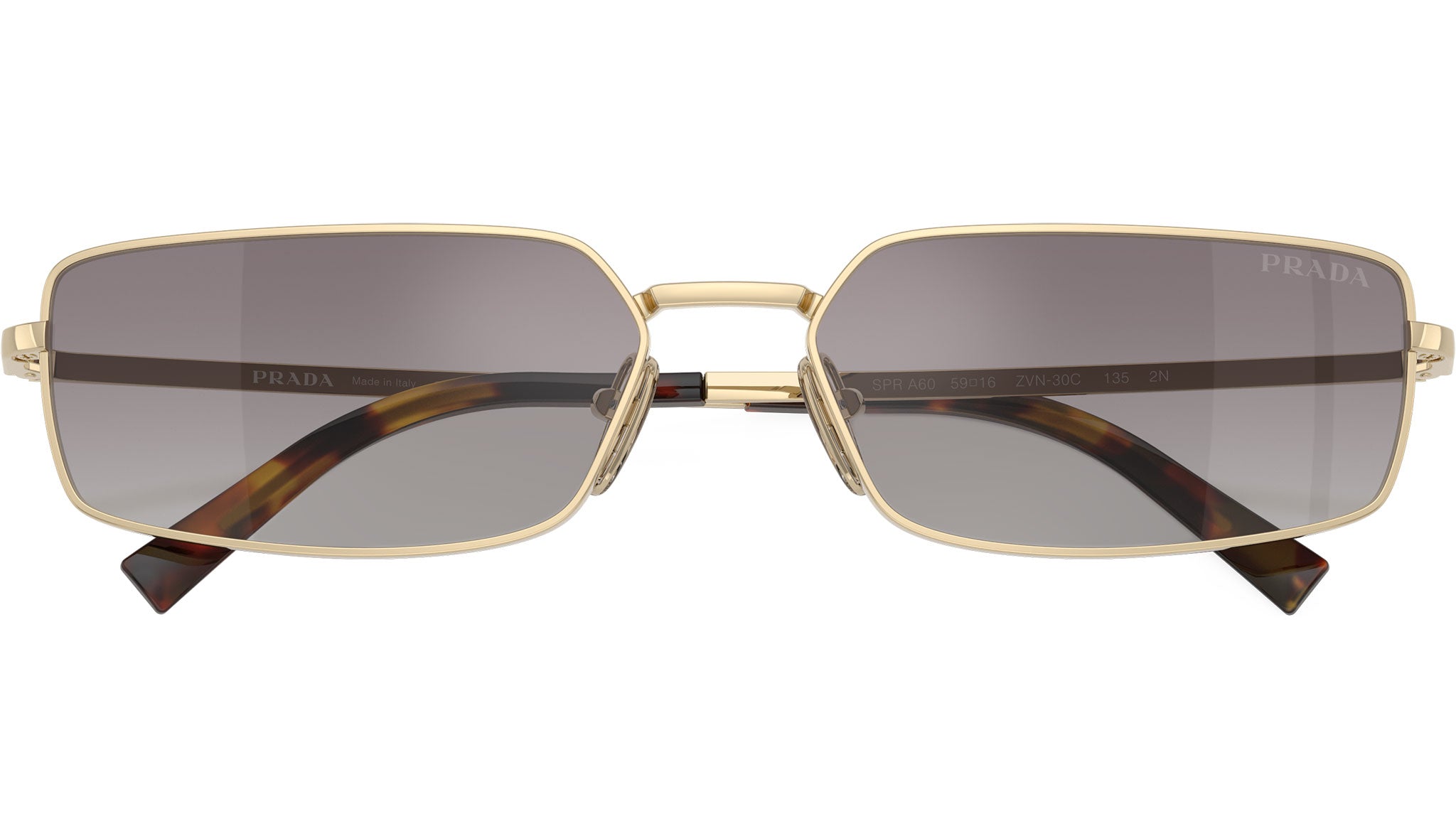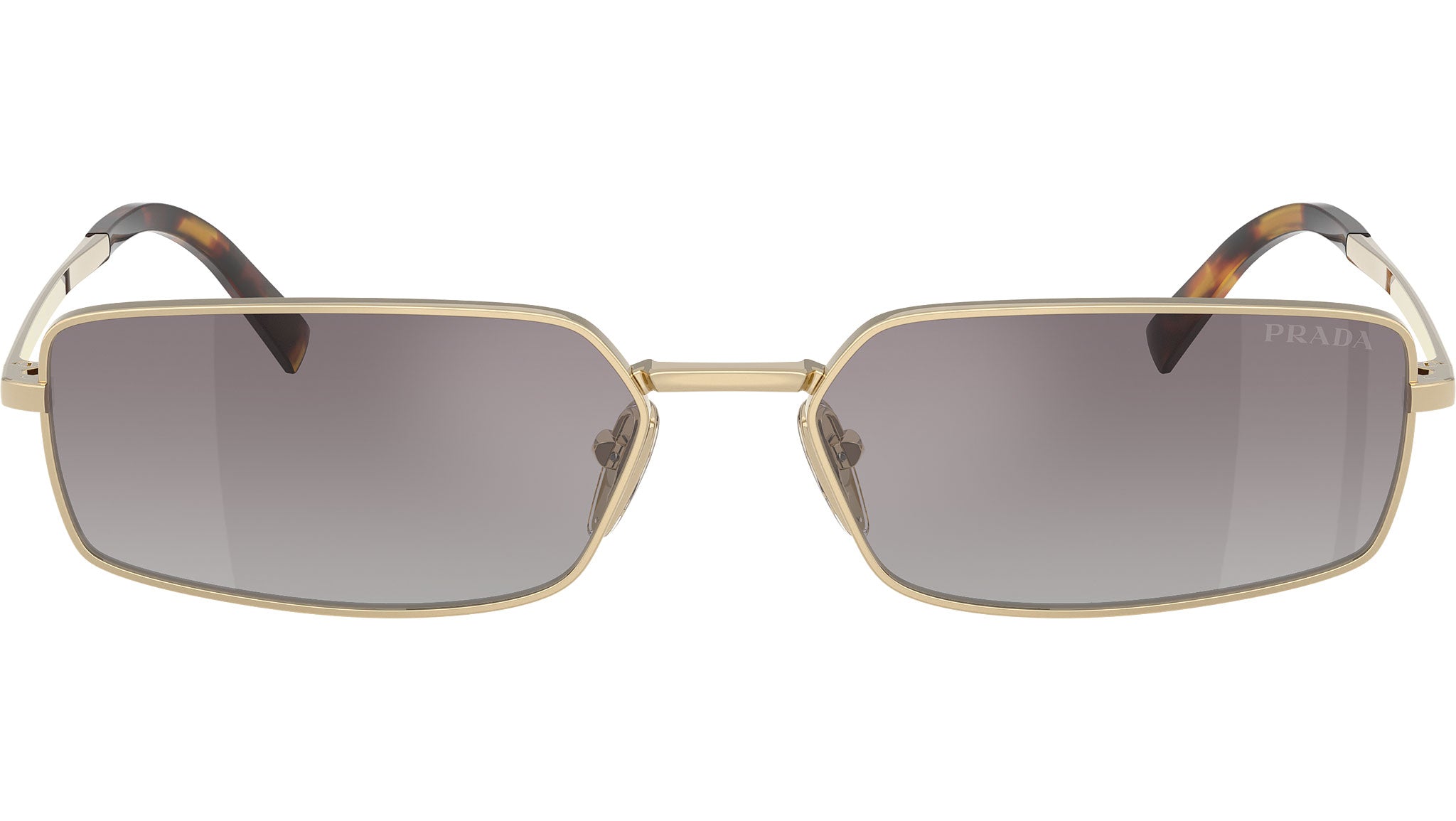 Солнцезащитные очки Prada A60S прямоугольной формы с серебристыми зеркальными линзами в оправе из золотистого металла.